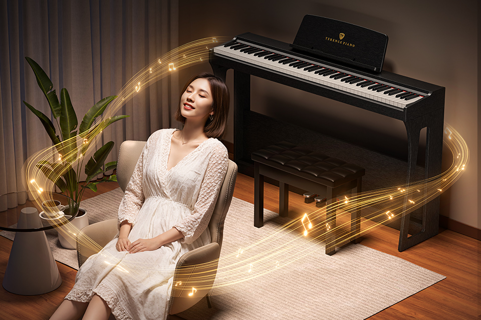 彈奏力度大時聲音較強勁,彈奏力度小時聲音會柔和媲美三角鋼琴的演奏效果。 |